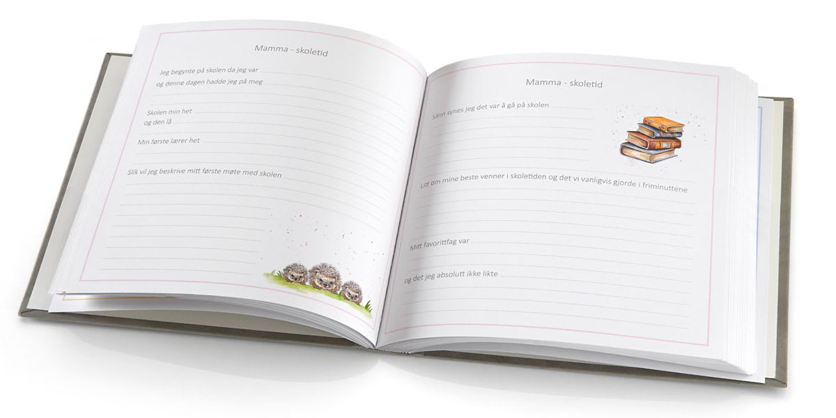 En populær nyhet er Lille meg og min familie - en minnebok man kan sende rundt til besteforeldre og annen familie, som kan skrive og fylle inn om sin egen barndom. Det er trivelig for foreldrene, og spennende for barna når de blir eldre. Man kan selv velge fordelingen mellom tekst og bilder. Ledende overskrifter og spørsmål gjør det enkelt å fylle ut historier fra små og store i familien.